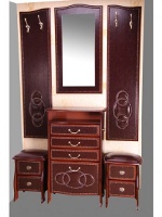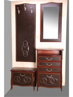 Прихожая из обувницы, двух вешалок, зеркала и двух табуретов.